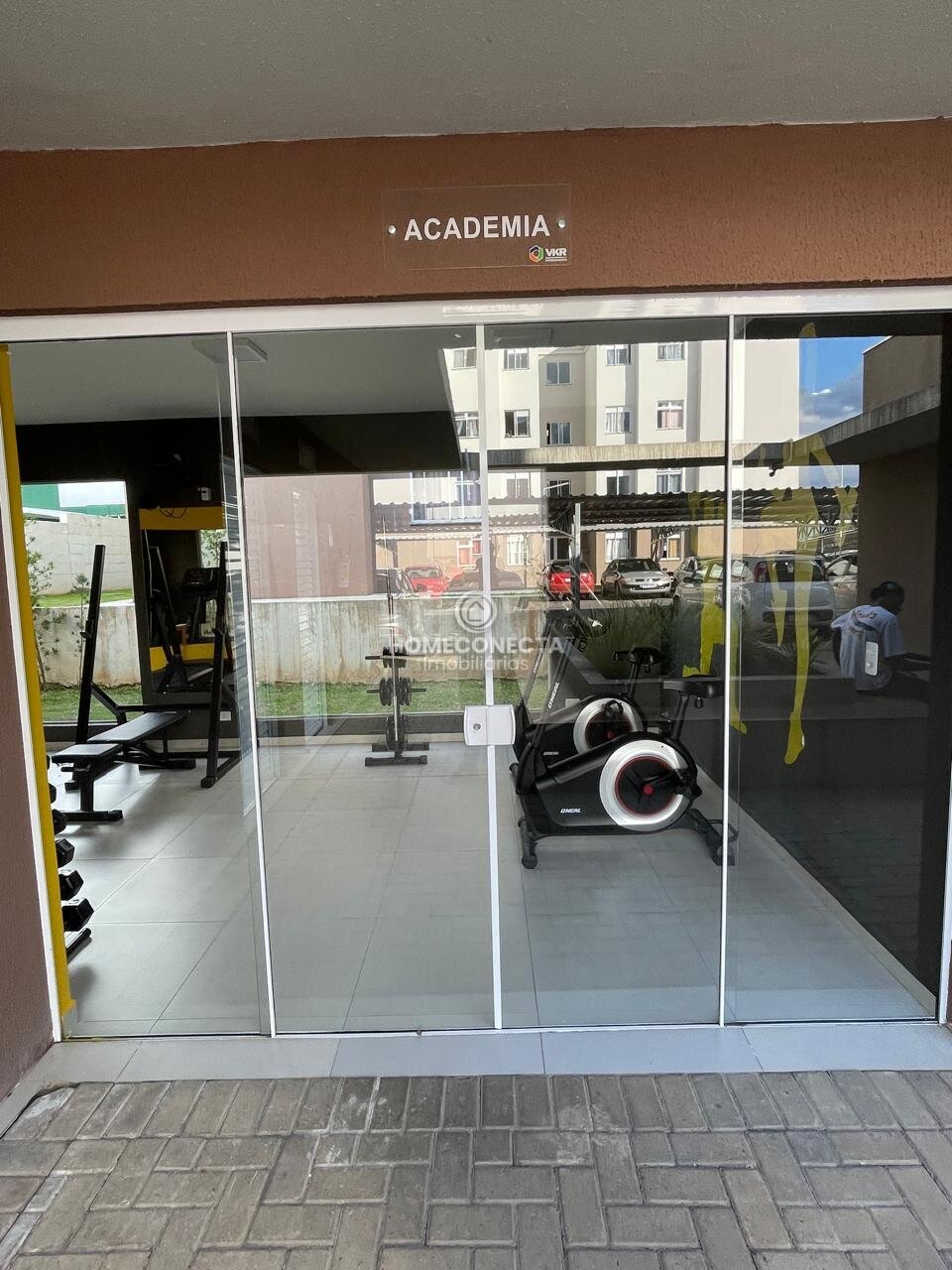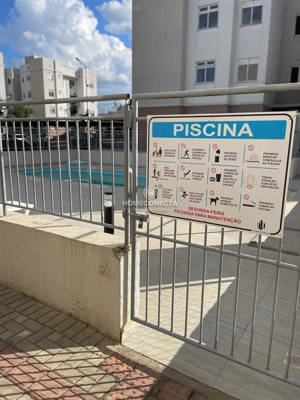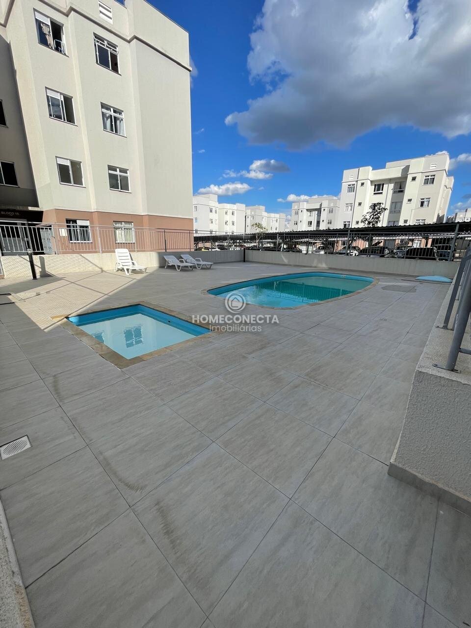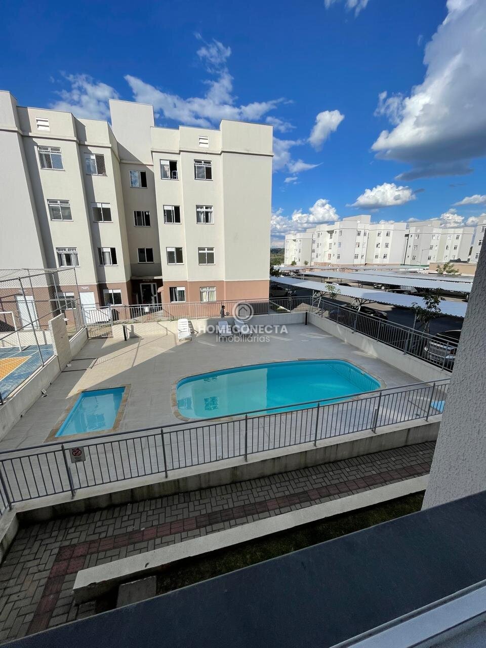 O condomínio conta com salão de festas, salão de jogos, mercado 24 horas, piscina, academia, quadra esportiva, espaço pet e sala de cinema, oferecendo lazer e comodidade para todos os moradores.