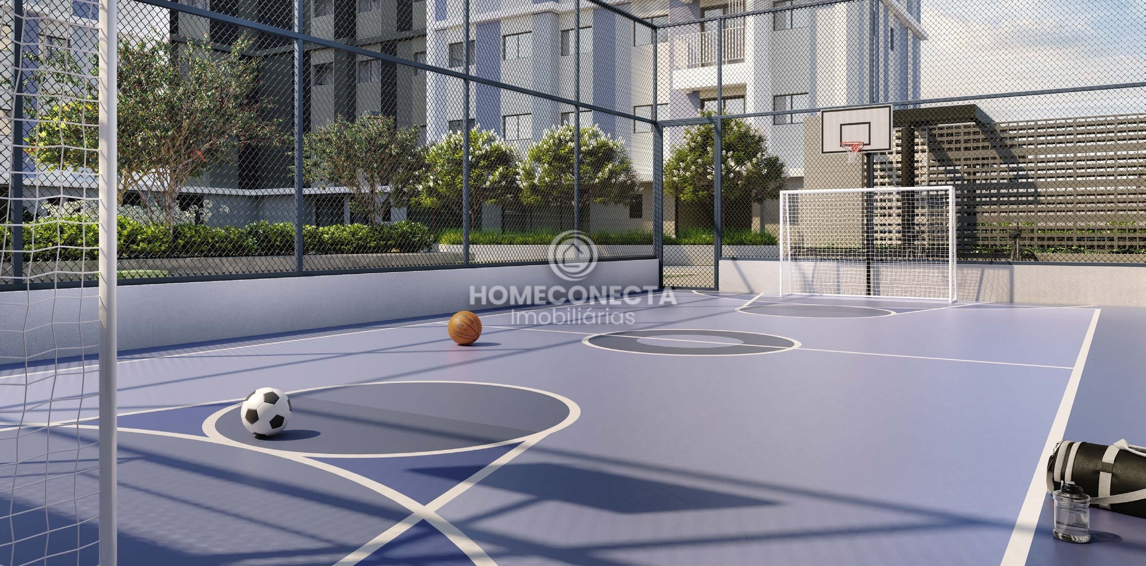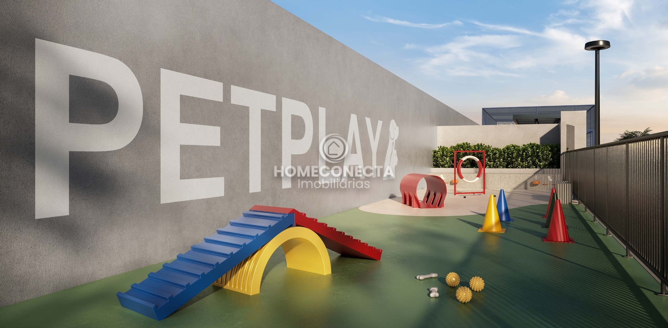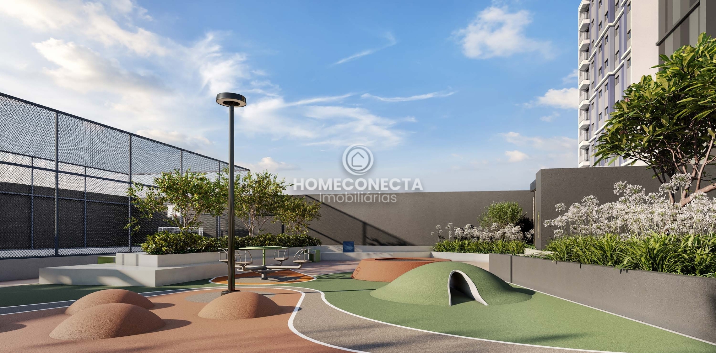 O condomínio conta com infraestrutura completa de lazer e convivência: academia, salão de festas, sala de jogos, brinquedoteca, pet place, playground, quadra poliesportiva, pista de cooper, quiosque gourmet, bicicletário e espaços de convivência integrados.