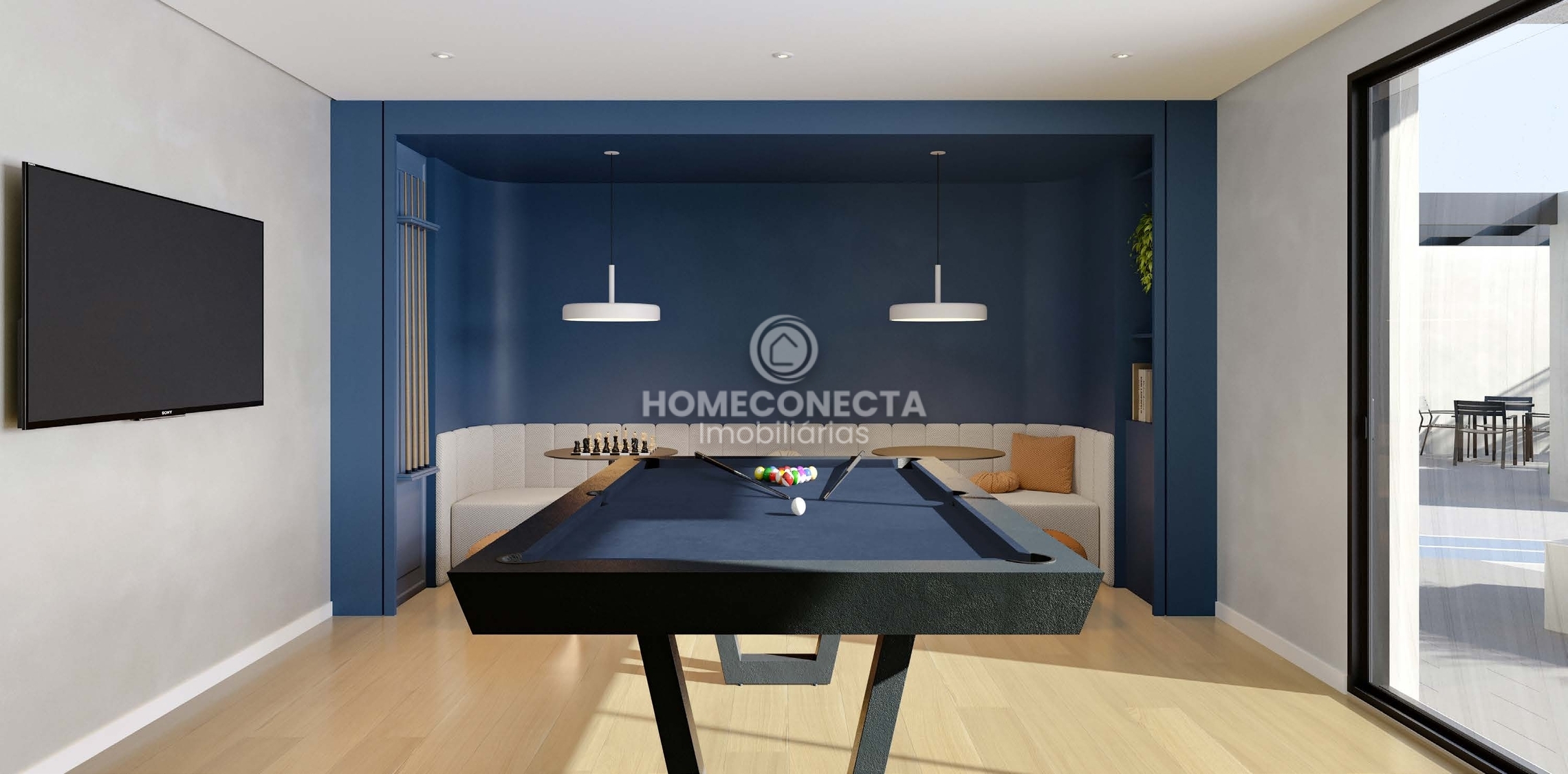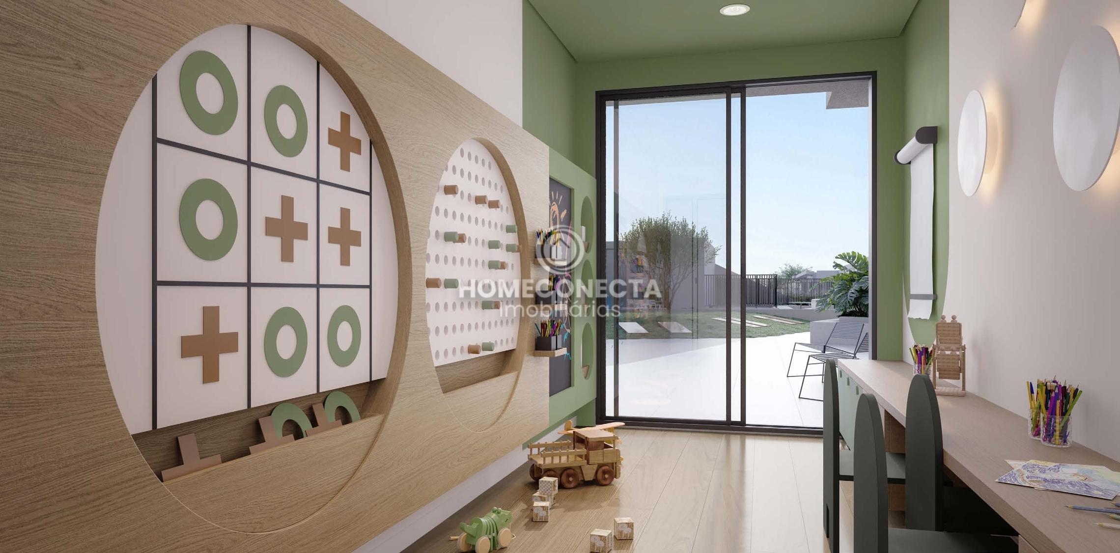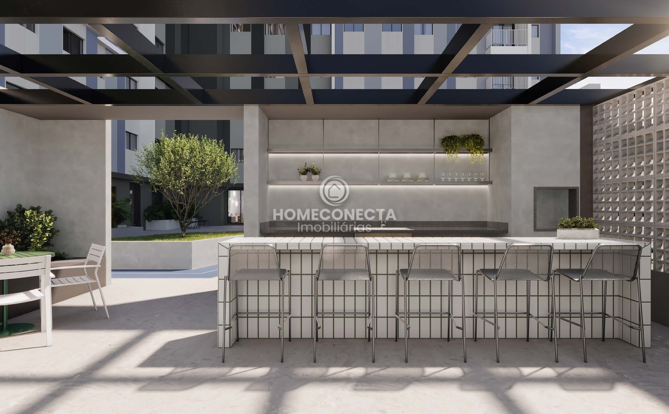 O condomínio conta com infraestrutura completa de lazer e convivência: academia, salão de festas, sala de jogos, brinquedoteca, pet place, playground, quadra poliesportiva, pista de cooper, quiosque gourmet, bicicletário e espaços de convivência integrados.