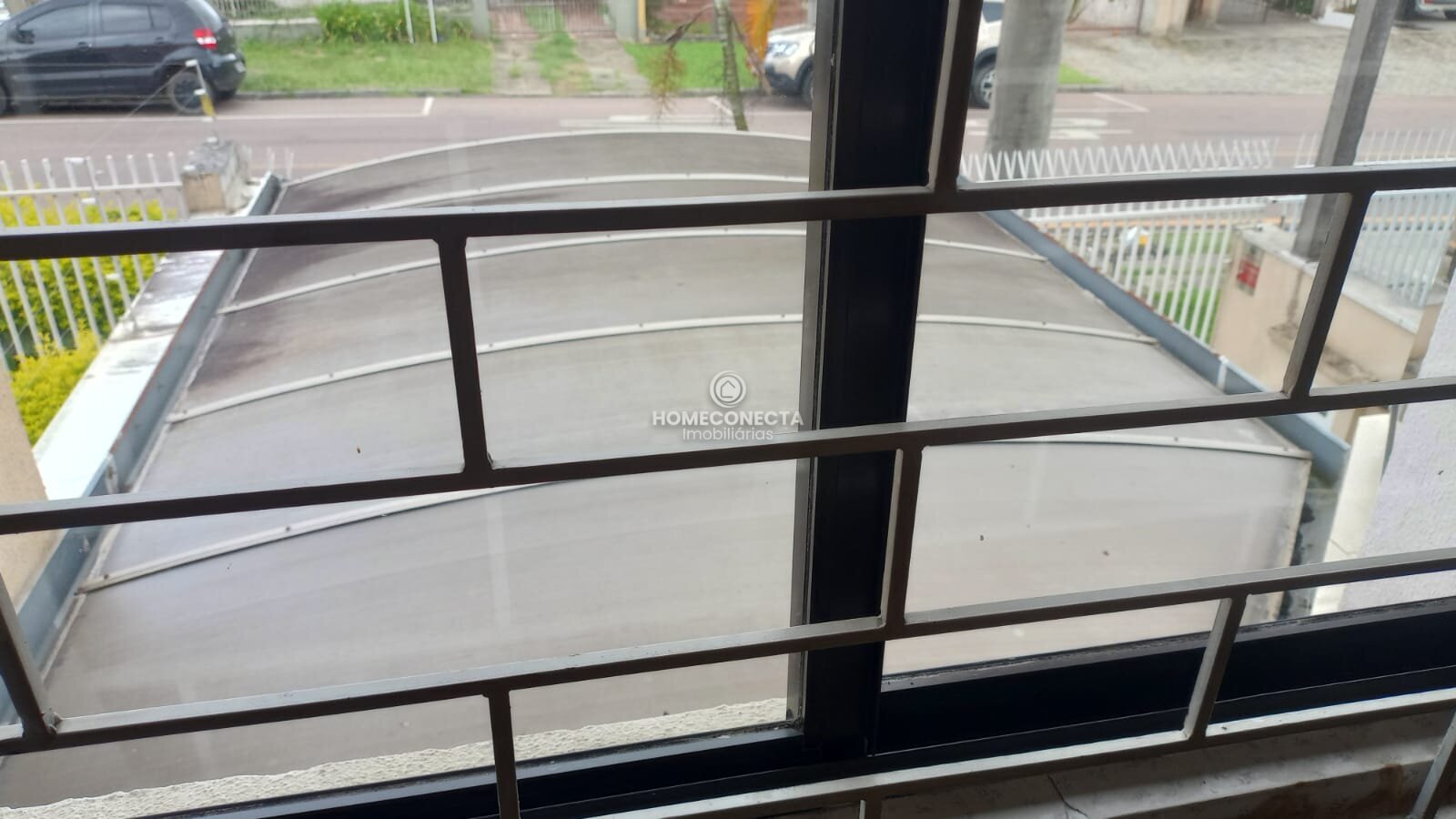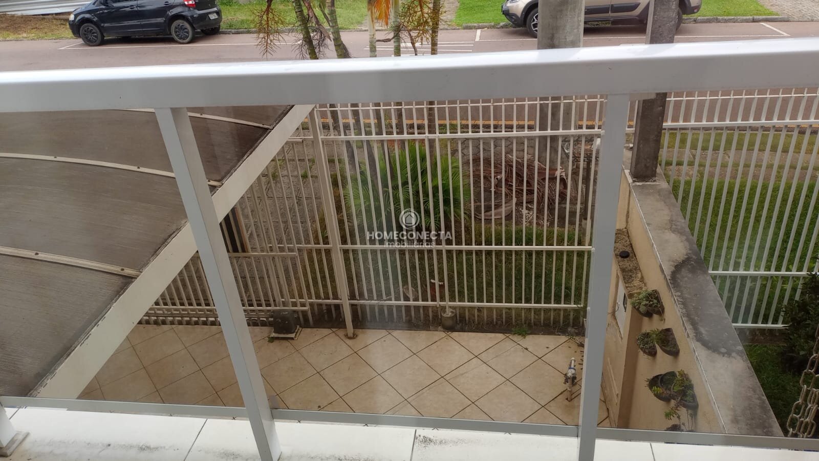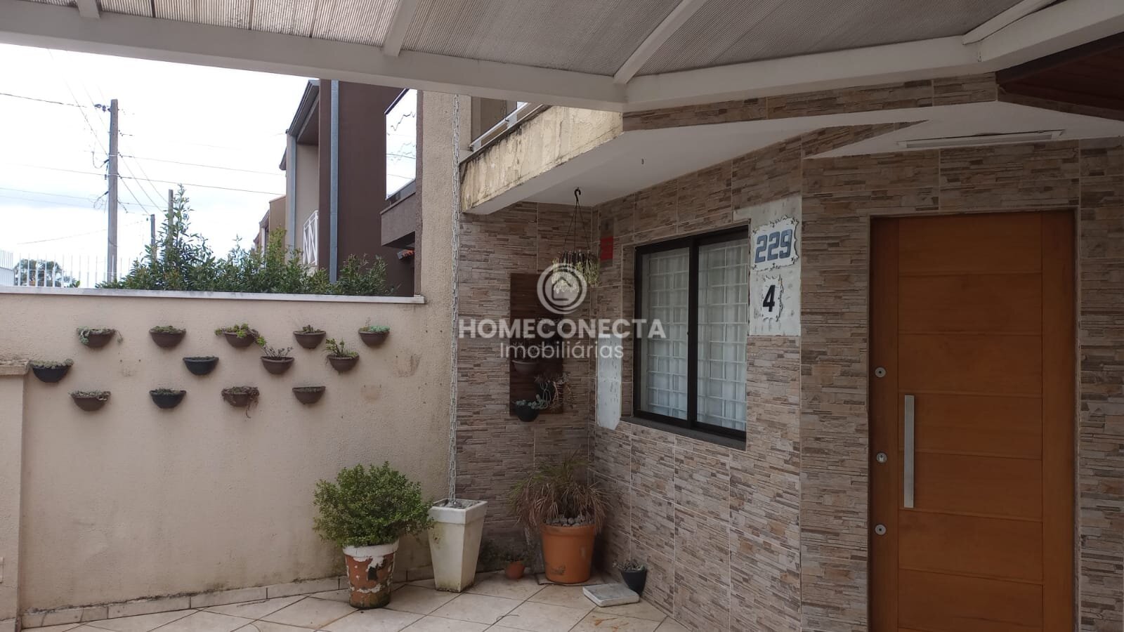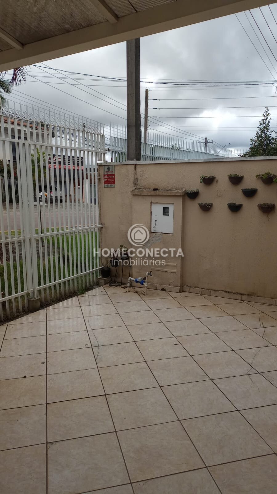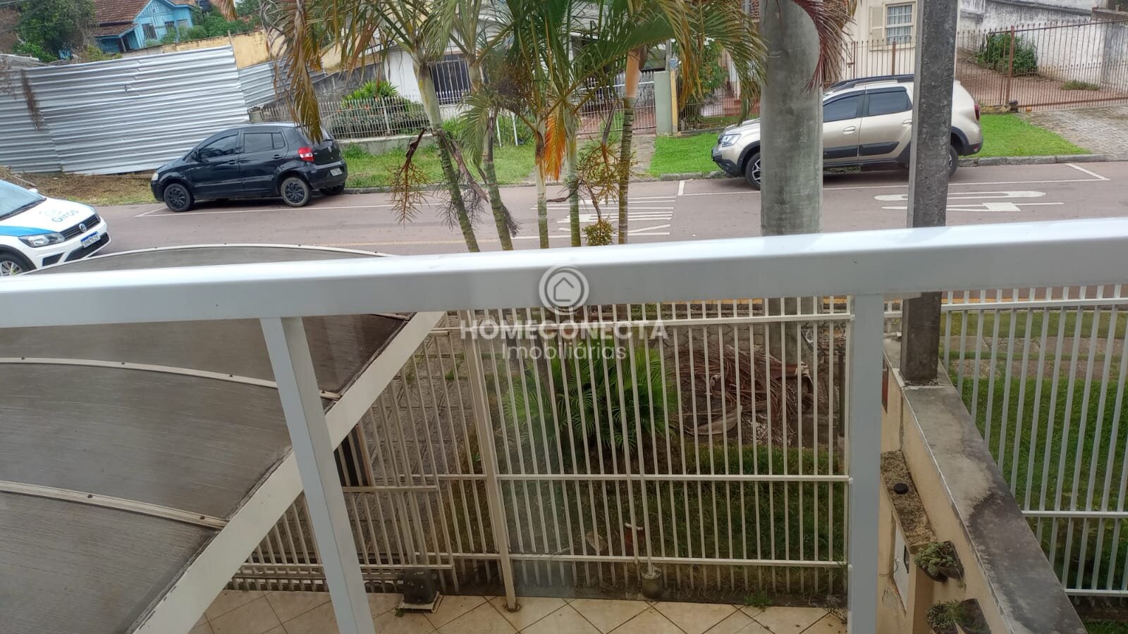 Na frente garagem coberta para até dois carros, mais espaço descoberto para um terceiro carro.