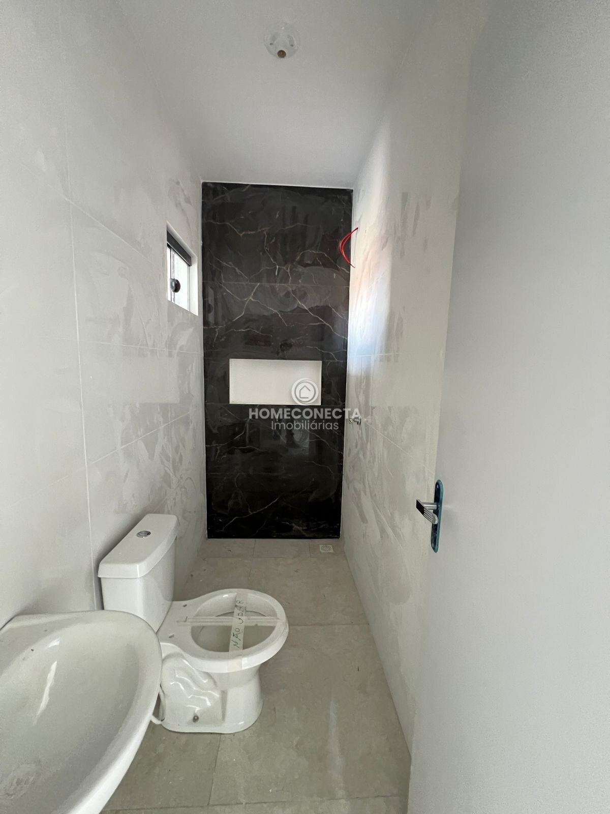 O banheiro social impressiona pelo design moderno, com revestimento em destaque no box, nicho embutido e excelente padrão de acabamento.
