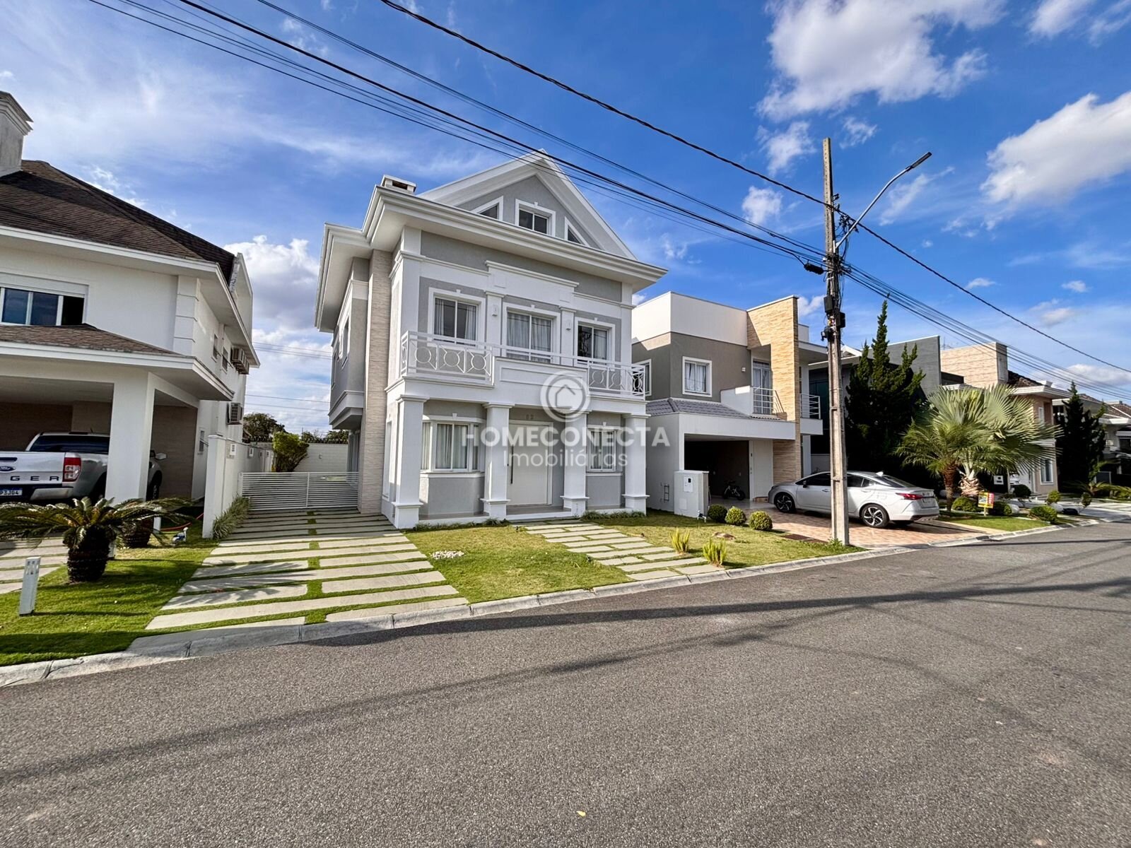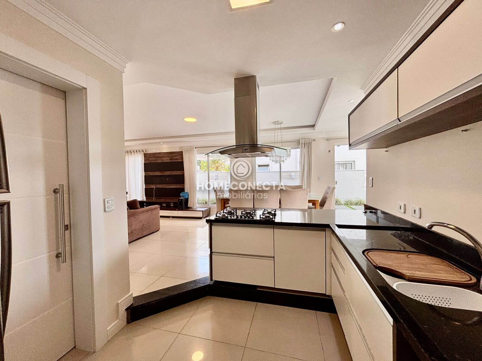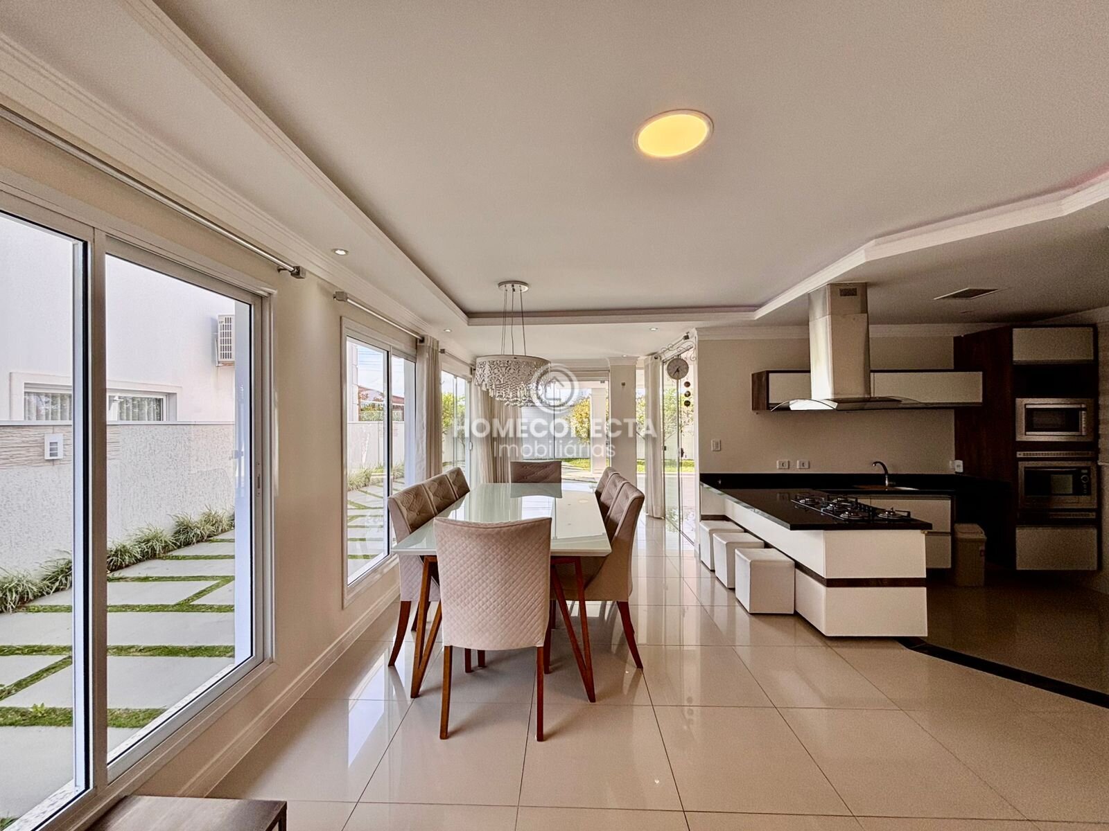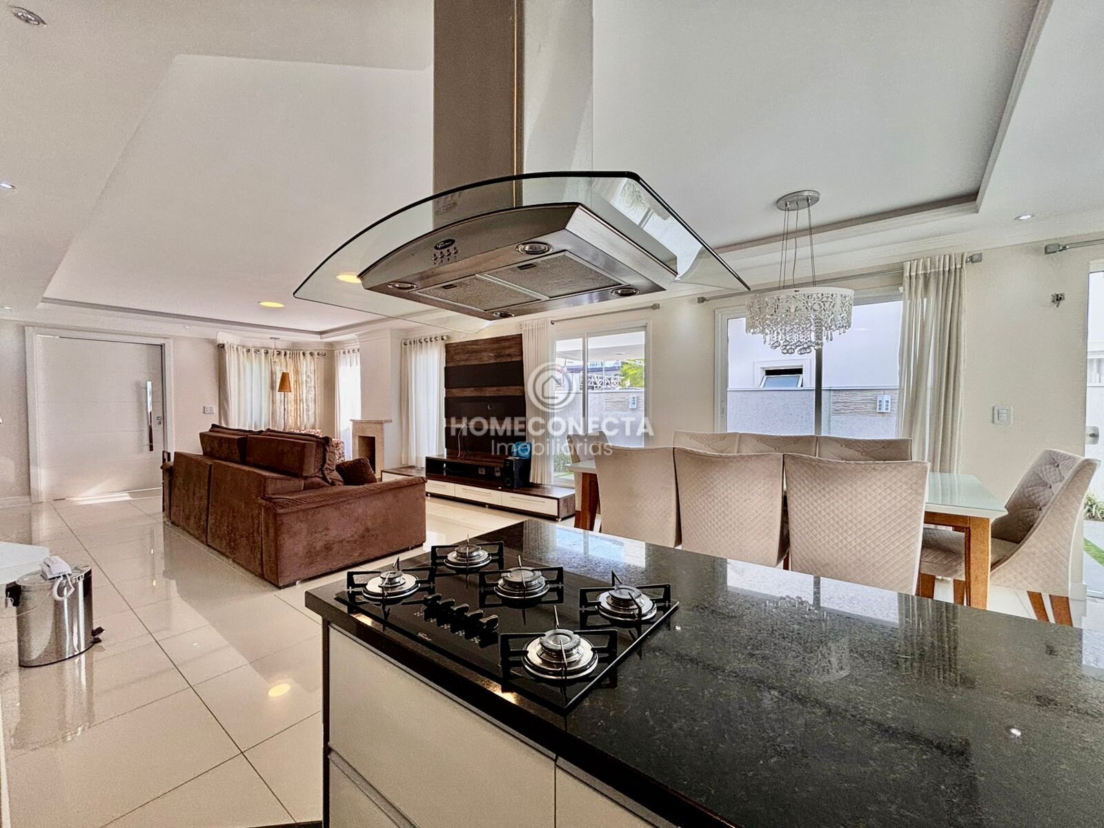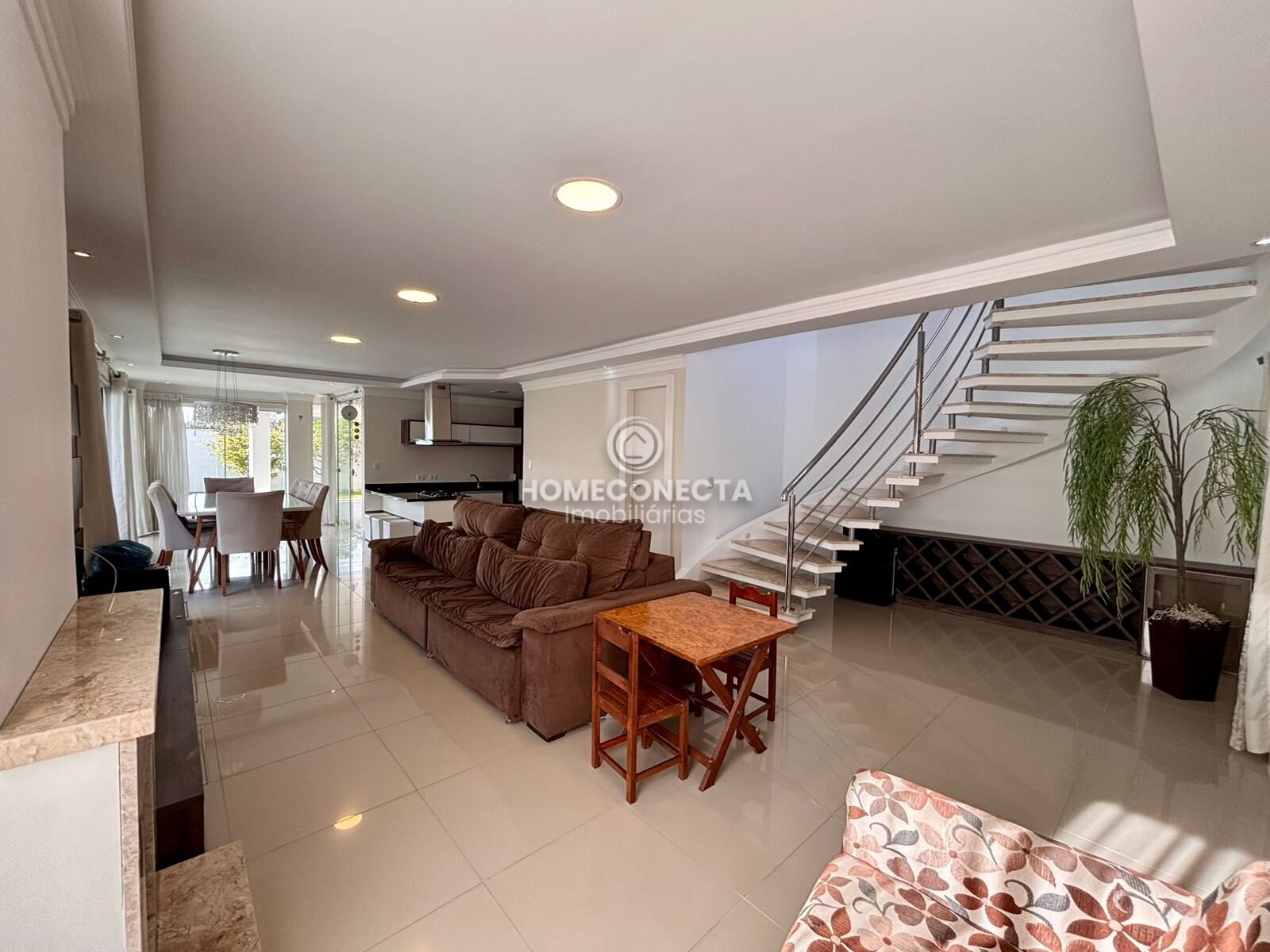 Distribuída em três pavimentos, a residência oferece um projeto arquitetônico moderno e funcional, com ambientes amplos, bem iluminados e excelente integração entre os espaços. No pavimento térreo, a área social conta com sala de estar e jantar integradas à cozinha, proporcionando um ambiente perfeito para receber convidados e desfrutar momentos em família.