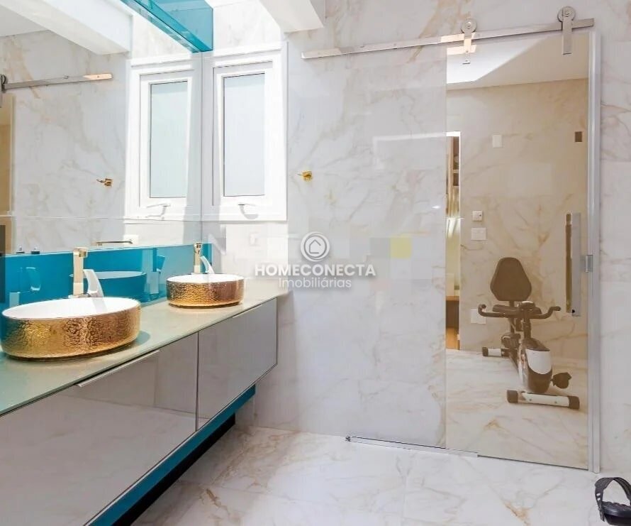 No andar superior, 3 lindas e amplas suítes todas com closet, ar condicionado, vidros duplos blindex e esquadrias de PVC.