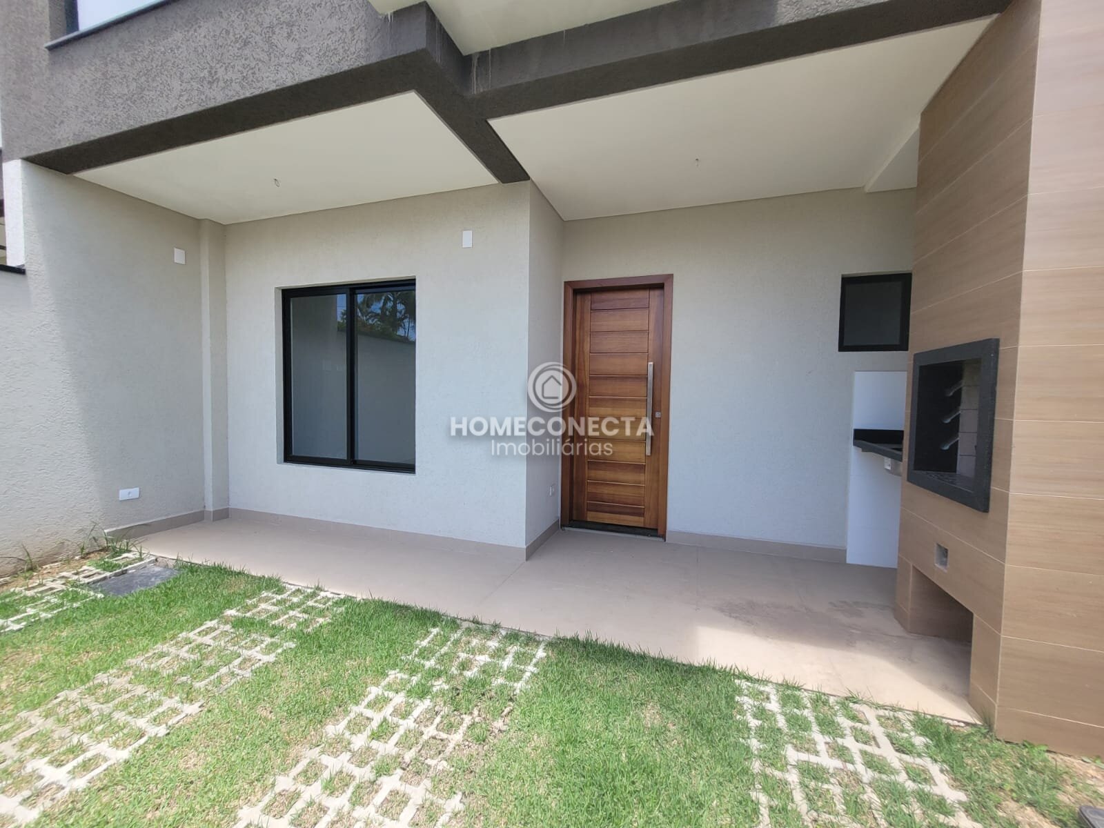 Fachada com detalhes em revestimento